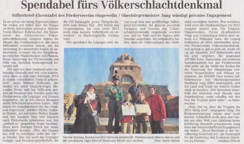 Das sagte der Vorsitzende des Fördervereins Völkerschlachtdenkmal Leipzig e.V., Klaus-Michael Rohrwacher, am Donnerstag beim 153. Leutzscher Gespräch.